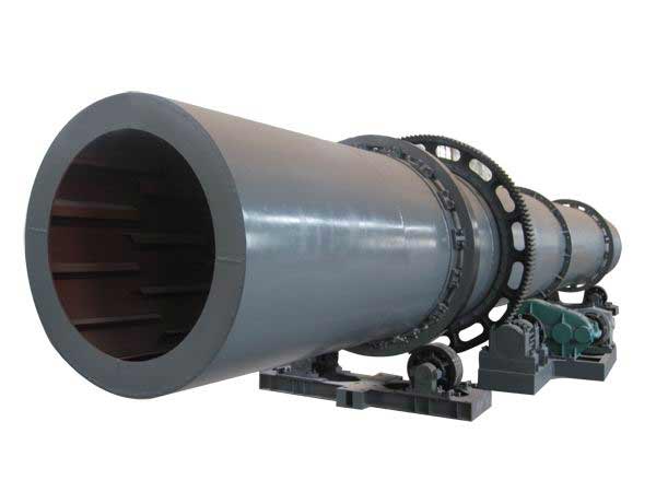 1)筒體:(本機主體)用12~20mm鋼板制成,分為前段—預熱段,筒內(nèi)壁裝有螺旋葉片。主要用以防止剛進入機內(nèi)的濕料發(fā)粘堵料。螺旋板起到推送料和翻料打散物料,使水份易散發(fā)排出作用;中段—烘干段,筒體內(nèi)壁裝有多塊揚料炒板,它不但起到翻炒物料,使物料受熱烘烤均勻,且揚起物料使水分易于散發(fā)脫離物體。而且還與筒體一起旋轉(zhuǎn)至上半部被上層熱氣流加熱,轉(zhuǎn)到底部時再將熱傳導加熱物料。周而復始,起熱傳導作用,是本產(chǎn)品烘烤物料快干、節(jié)能、減少熱耗的特點;后段—冷卻段,筒體內(nèi)光壁沒了揚料板的熱傳導和翻炒,物料靜靜慢慢地在底部冷卻后從出料口流出。